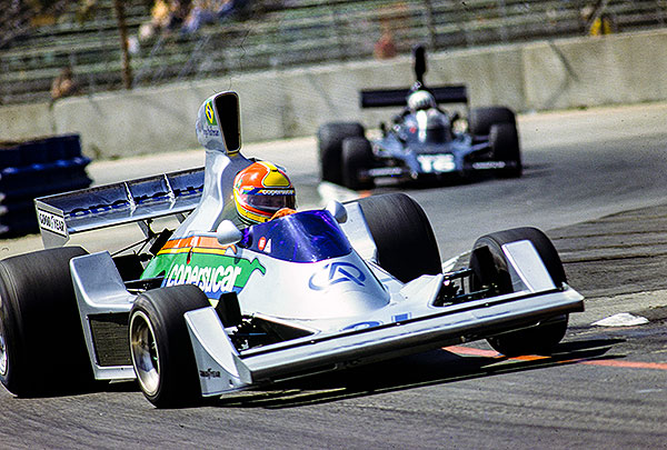 Die Auflösung des letzten Rätsels: Der Brasilianer Luiz Bueno mit seinem Surtees TS9-Ford in Interlagos 1973. Er wurde beim Heimrennen vier Mal überrundeter Zwölfter.